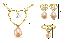 VP Jewels: 18k Solid Gold Diamonds 7mm Pink Pearls Solitaire Heart Earrings, Ring and Necklace Set