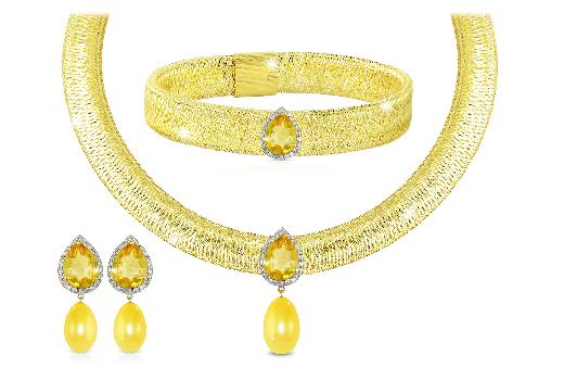 Vera Perla 18K Gold 0.48ct Diamonds, Citrine and 13mm Golden Pearl Jewelry Set - 3 pcs.